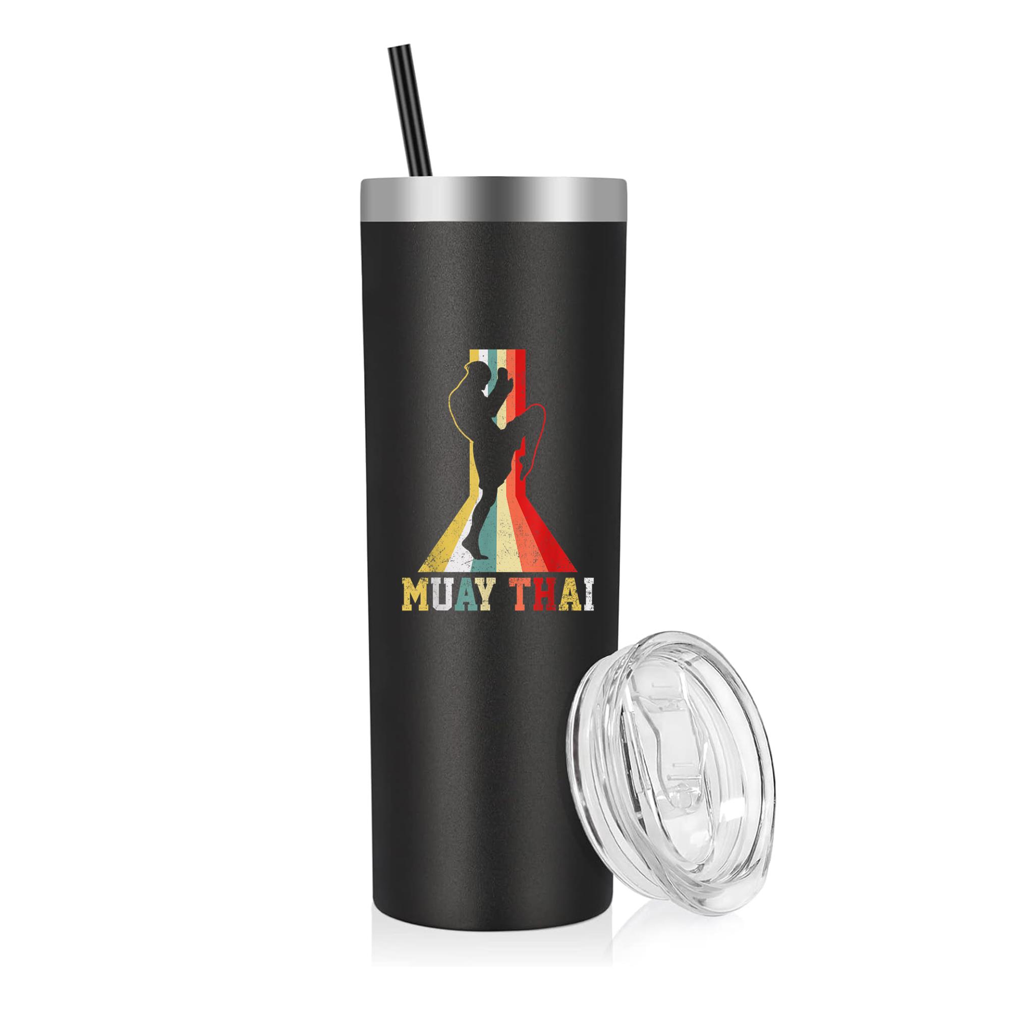 Enjoy your favorite drinks anywhere with our Muay Thai Kickboxing Thai Boxing Retro 20oz Stainless Steel Tumbler 20oz Stainless Steel Tumbler. Designed for durability and performance, this tumbler features double-wall vacuum insulation that maintains your drink’s temperature longer — keeping coffee hot and water ice-cold throughout the day.